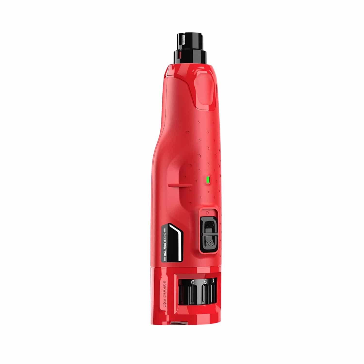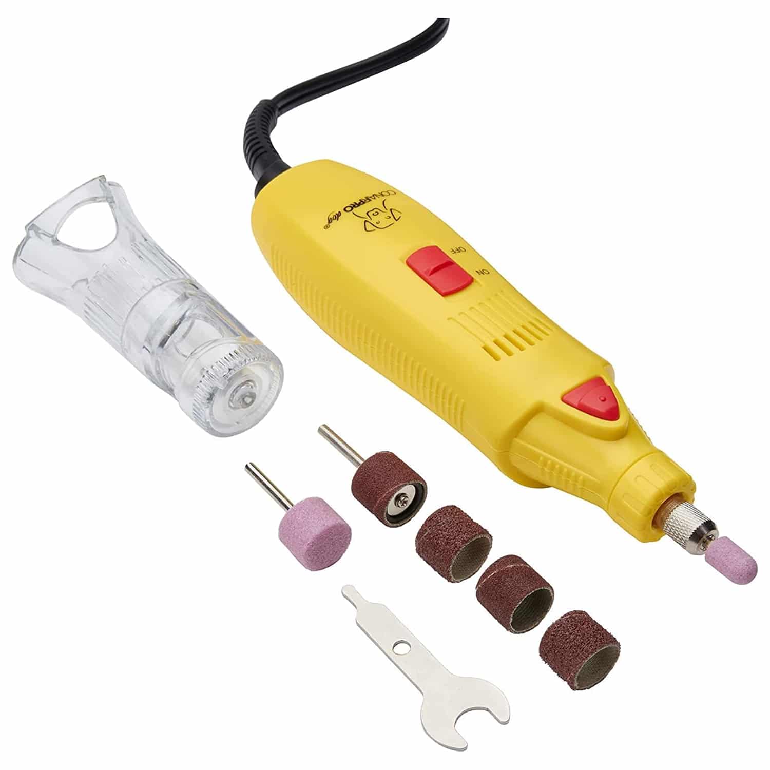 This grinder includes a comprehensive accessory set with two finishing stone heads, four grinding bands, and a dedicated grinding drum. The CONAIRPRO design prioritizes ergonomics with a comfortable grip that reduces hand fatigue during extended grooming sessions. Its high-torque motor effectively grinds even thick nails with reasonable efficiency.