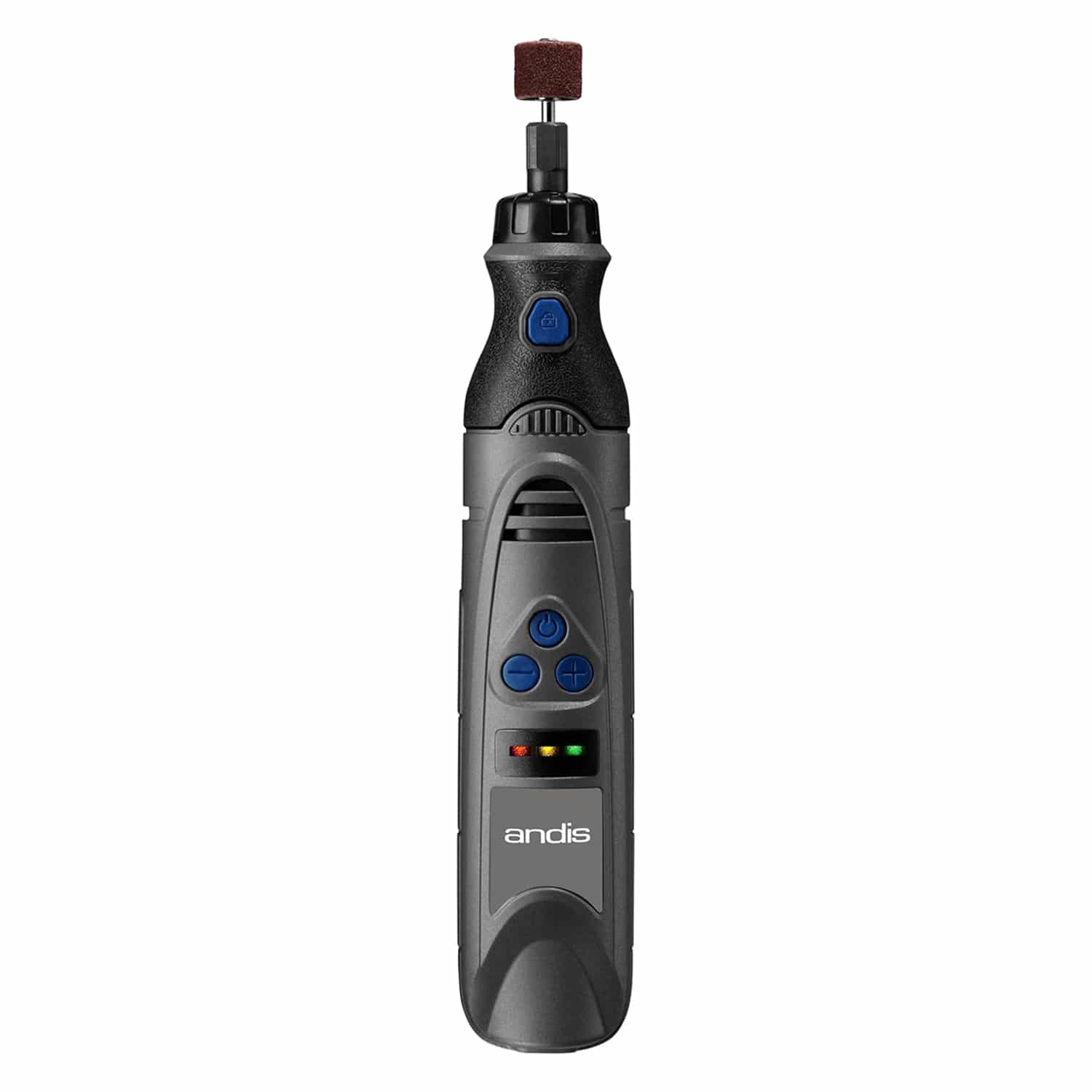 The Andis Premium Nail Grinder brings American-made quality to pet nail care with its durable construction and reliable performance. Its two-speed design offers basic versatility between normal and turbo modes for different nail thicknesses. The lithium-ion battery provides cordless convenience for hassle-free grooming sessions.