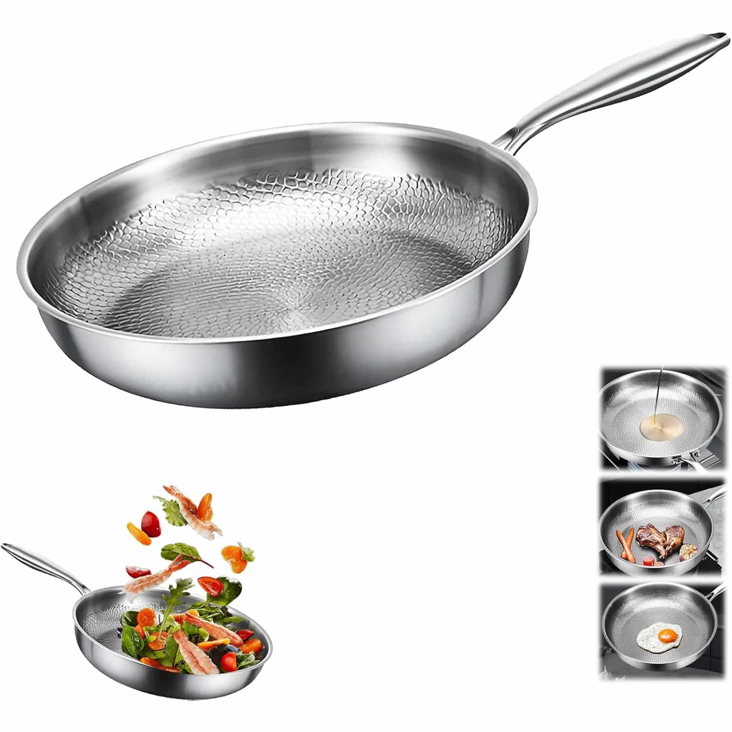 The hexagonal pattern creates an interesting compromise: the raised stainless steel ridges provide excellent searing contact for proteins, while the ceramic-coated valleys offer non-stick release for delicate foods like eggs and fish. This hybrid approach delivers versatility, though it doesn't achieve the pure coating-free status of titanium competitors, and the ceramic component may degrade over time with intensive use or high-heat cooking.