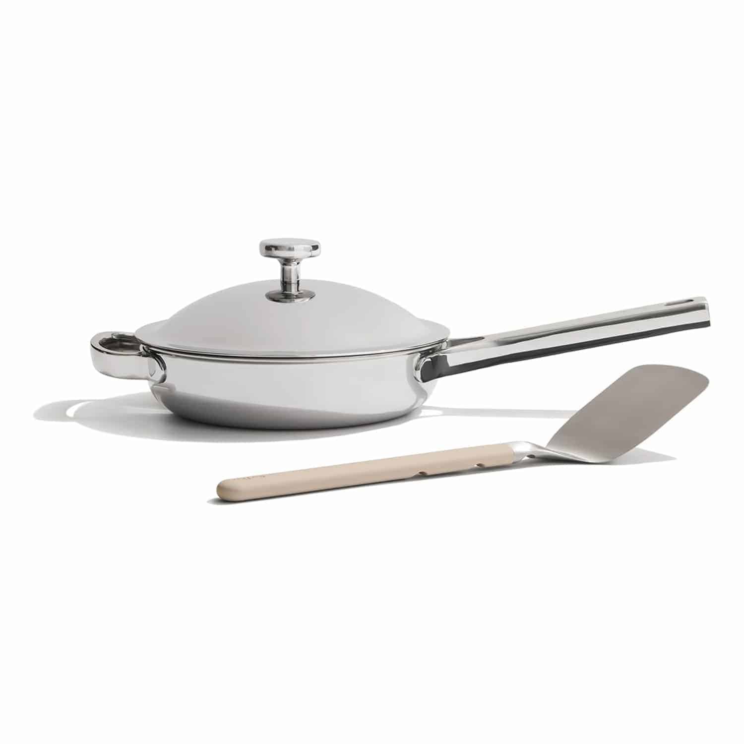 The Our Place Non Stick Pan revolutionizes compact cooking with its innovative non-toxic titanium interior that's completely coating-free and manufactured without PFAS or forever chemicals, addressing growing consumer concerns about chemical exposure in everyday cookware. This 8.5-inch diameter pan with 1.48-quart capacity perfectly serves smaller kitchens, single servings, or side dishes while delivering professional-grade performance through its fully-clad tri-ply construction.